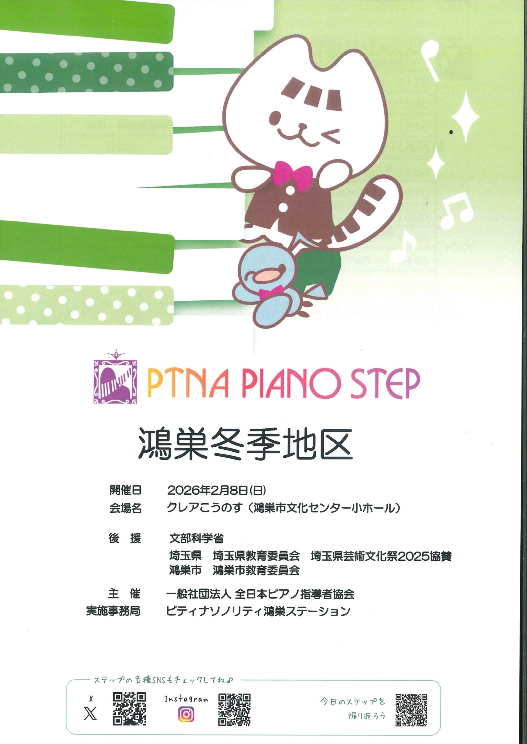 日 | PTNA PIANO STEP 鴻巣冬季地区 | 10:00 | 関係者 | ピティナソノリティ鴻巣ステーション |